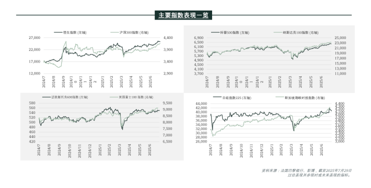 目前,MSCI美国指数的估值相当高,远期市盈率达21.3倍 (截至2025年7月18日,较近十年历史平均水平高出近1.4个标准差),所以我们重申对美股的审慎态度及分散投资建议。我们继续看好人工智能、人口老龄化和工业自动化/制造业回流生产政策的主要受益者等关键主题投资。个股而言,我们更喜欢资产负债表稳健、定价能力强以及受关税影响较小的优质企业。