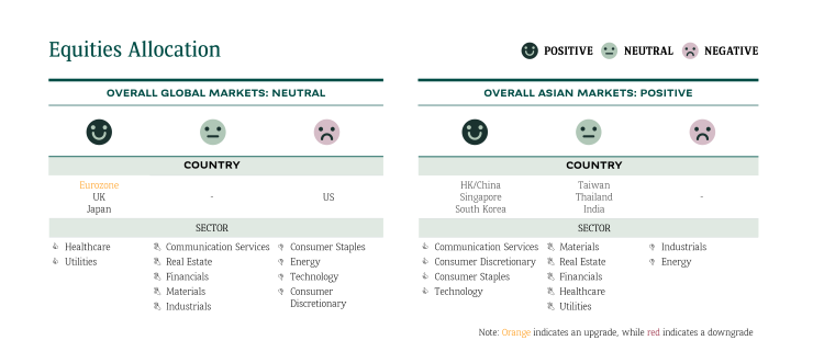 US equities continued their recovery since April 2025 to reach fresh record highs, buoyed by cooling trade/geopolitical tensions as well as a resilient economy. However, with valuations back at relatively elevated levels, we reiterate a selective stance towards the country’s stocks. We continue to favour names exposed to structural themes such as artificial intelligence and reshoring, while preferring quality firms with strong balance sheets, pricing power, and less exposure to tariff headwinds.