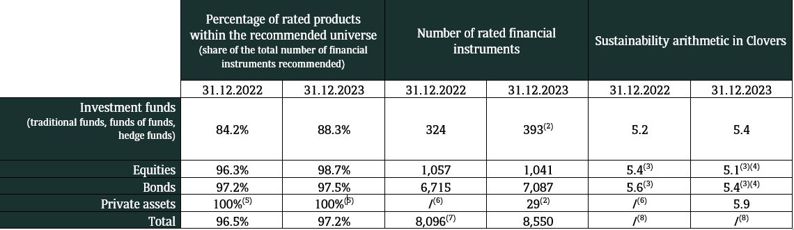 (8) As the methodologies assessing the responsibility level of recommended assets differ according to the asset class, an arithmetic average across all asset classes is not relevant in this table.