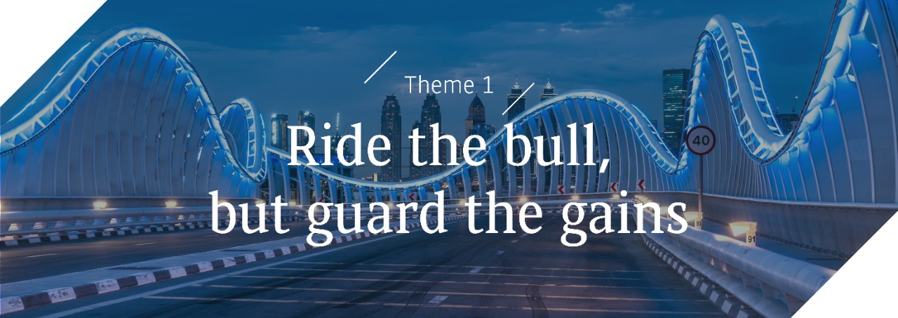 At this point in the business cycle, we advise clients to balance potential positive stock market returns against the ever-present risk of a market correction, via:
